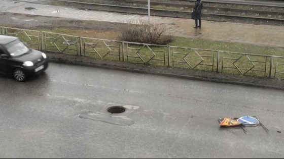 При этом рядом с колодцем лежит дорожный знак, который сообщает о том, что на пути находится препятствие и его нужно объехать. Как предположили комментаторы, его кто-то сбил и не поднял.