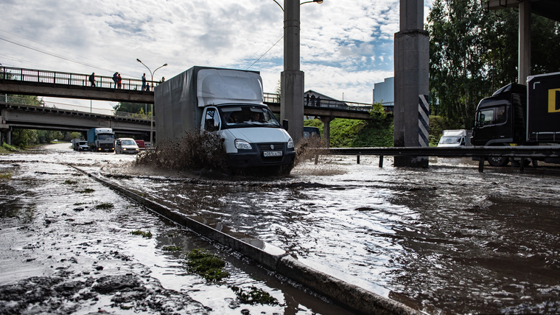 Коммунальная авария произошла на улице Боровой. Постепенно горячая вода дошла до Июльской. На кадрах видно, как водители автомобилей продолжают движение по затопленной улице, несмотря на опасность.