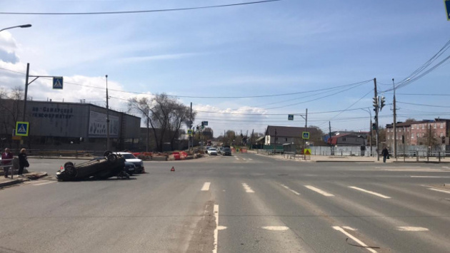 В Самаре на перекрестке Авроры и Промышленности легковушка перевернулась на крышу