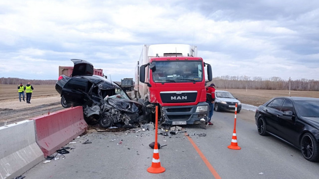 По предварительным данным Госавтоиспекции, легковой автомобиль выехал на встречную полосу. «Травмированы водитель и три пассажира легкового автомобиля, они доставлены в больницу. По предварительным данным, два человека получили тяжелые травмы», — уточнили в ГИБДД.