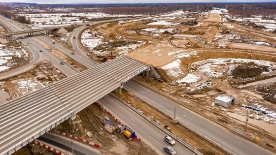 На 26 из 37 км участка возводят девять искусственных сооружений, в том числе развязку с М-7, на которой расположатся 10 съездов. Здесь уже завершен монтаж всех 39 балок, ведется подготовка к бетонированию пролетов дорожного полотна.