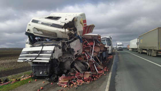 Авария случилась на трассе М5 в Самарской области недалеко от Сергиевска. Здесь столкнулись три большегруза. Один из них перевозил фрукты. Очевидцы сообщили корреспонденту sova.info, что причиной инцидента мог стать выезд фуры на встречную полосу. Это спровоцировало столкновение виновника ДТП сразу с двумя крупногабаритными авто. По предварительной информации, пострадавших нет. Подробности аварии уточняются.