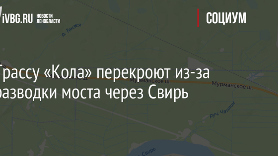 Трассу «Кола» перекроют из-за разводки моста через Свирь