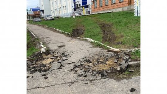 К сообщению она прикрепила снимки, подтверждающие, что асфальтовое покрытие пешеходной зоны пострадало от колес грузовиков и нуждается в ремонте.