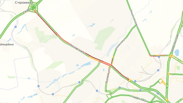 Как информирует сервис «Яндекс. Пробки», дорожный затор наМосковском шоссе растянулся откольцевого перекрестка сулицей Трофимовской доНового Елшанского кладбища. Собратной стороны машины стоят отсамой объездной трассы вокруг регионального центра.