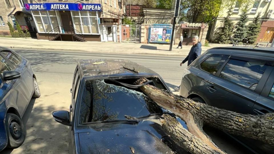 В центре Саратова упавшее дерево повредило два автомобиля