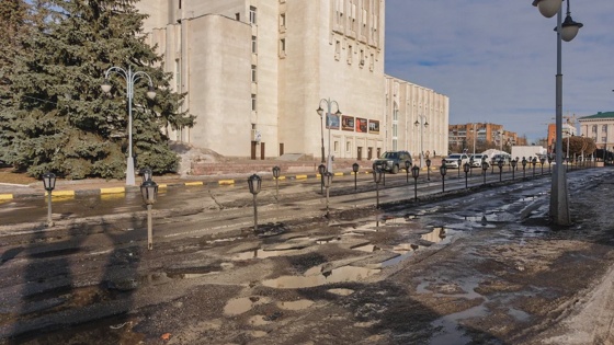 В Курске на проездах около драмтеатра после ремонта появились ямы