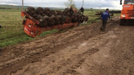 На дороге в Оренбургской области перевернулся большегруз с нефтепродуктами