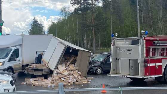 В Перми в результате аварии из фургона высыпались коробки с печеньем. На место ДТП уже прибыла скорая, сообщает паблик «Мой город — Пермь» в соцсети «ВКонтакте».