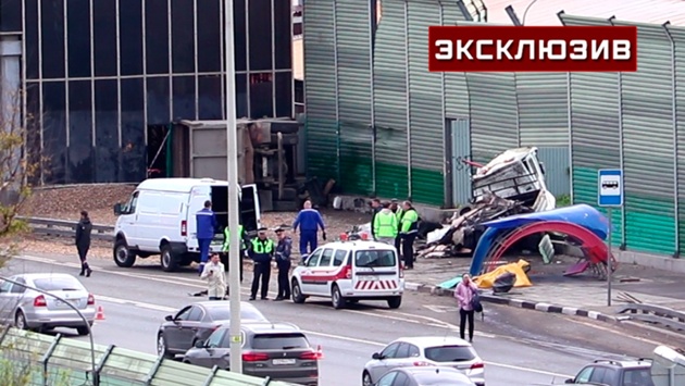 Грузовой автомобиль с щебнем снес остановку и врезался в надземный переход в Одинцовском районе Московской области. Кадры с места дорожно-транспортного происшествия оказались в распоряжении «Звезды».