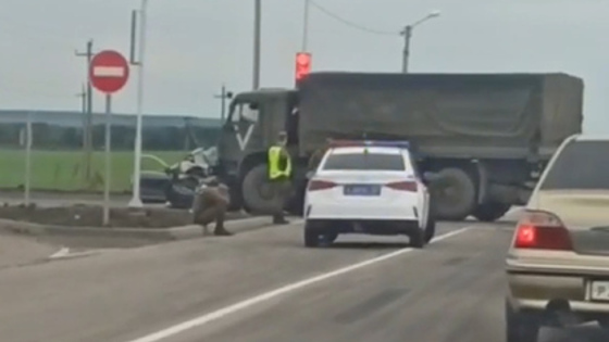 В граничащем с Украиной российском регионе военный КамАЗ наехал на легковушку
