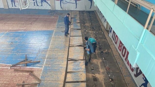В нововятском спорткомплексе «Заря» начали менять покрытие зала
