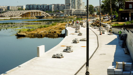 Реконструкция набережной реки Миасс в Челябинске началась в 2020 году. В сентябре 2021 был сдан участок от ТРК «Мегаполис» до улицы Свободы.
