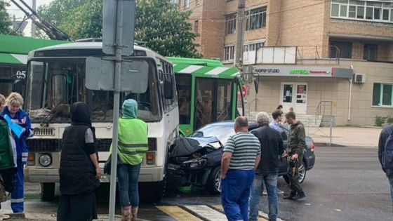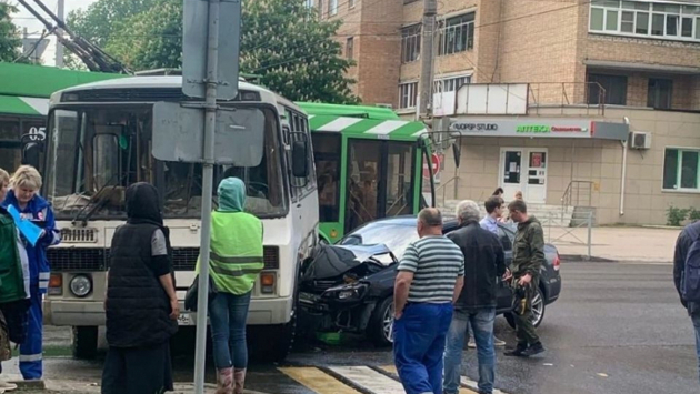 В центре Курске ПАЗик столкнулся с Фольксвагеном Поло