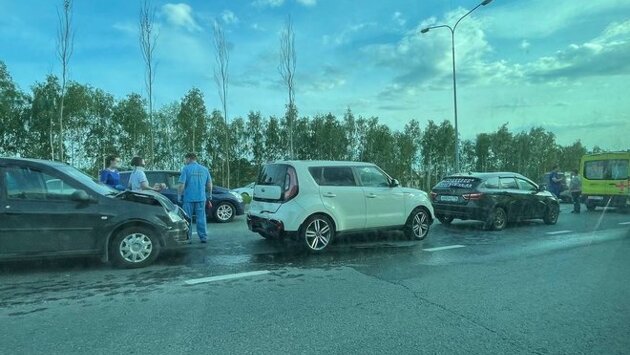 В Казани образовалась пробка на Мамадышском тракте из-за аварии
