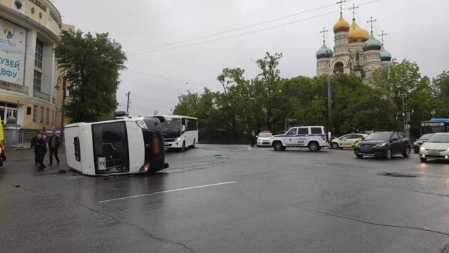 Обстоятельства автоаварии, произошедшей накануне, 6 июня, в районе перекрестка на Покровском парке, установлены. Так, управляя автомобилем-такси марки Toyota Aqua, 25-летний мужчина двигался по Океанскому проспекту . Микроавтобус, за рулем которого находился 29-летний мужчина, из-за сильного удара перевернулся. В салоне автобуса в момент ДТП находились пассажиры.