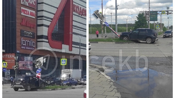В Екатеринбурге КАМАЗ влетел в кроссовер, и тот снес светофор