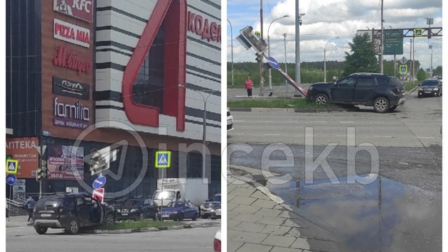 В Екатеринбурге на перекрестке улиц Вильгельма де Генина и Краснолесья КАМАЗ влетел в кроссовер «Рено», который затем снес светофор. Об этом URA.RU сообщил читатель.