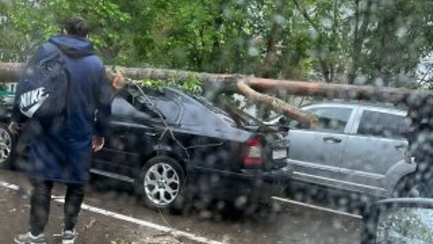 В Уфе из-за непогоды на автомобили упали 4 дерева