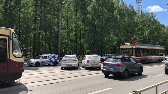 Трамваи встали на улице Белинского из-за столкновения двух легковушек