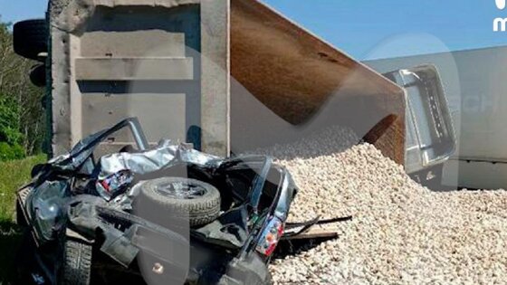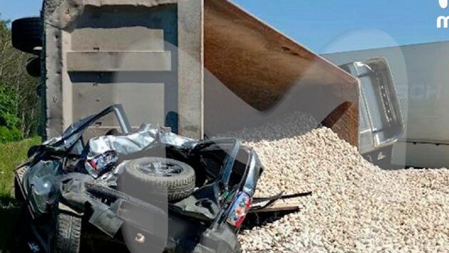 По данным Telegram-канала Mash, столкновение произошло из-за фуры, груженной щебнем. Водитель габаритного автомобиля не справился с управлением – прицеп перевернулся и раздавил авто марки Chevrolet Niva. Затем столкнулись еще несколько машин.