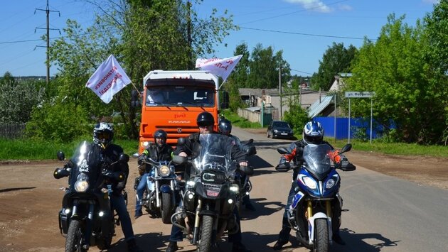 В этом году к железнодорожникам присоединились участники кировского отделения мотоклуба «Ночные волки». Они провели мотопробег совместно с железнодорожниками.