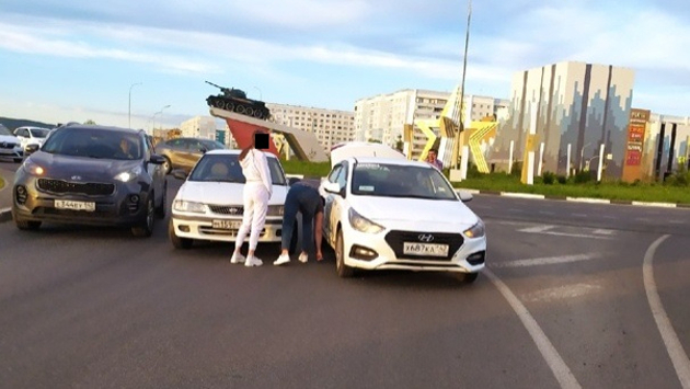 ДТП с машиной такси блокировало проезд около кольца в Кемерове