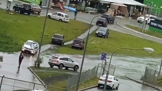 О глубокой луже между двумя торговыми центрами стало известно утром в четверг, 16 июня. В водительском Telegram-канале выложили видео, на котором запечатлены преодолевающие затопленный участок транспортные средства. Вода доходит до порогов легковых машин.