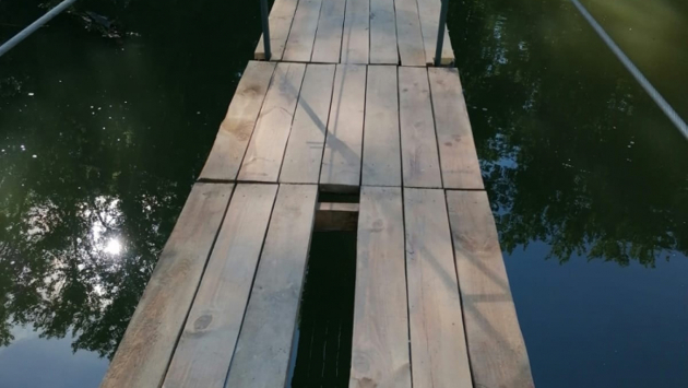 В Курске вандалы сломали доску на недавно отремонтированном подвесном мосту в Заре