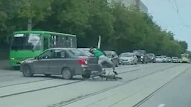 Дискокурьер во время танца на велосипеде врезался в автомобиль
