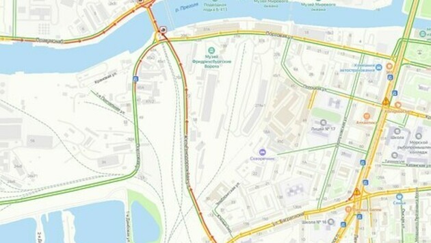 В Калининграде вечером в понедельник, 20 июня, из-за двух аварий в районе двухъярусного моста образовались пробки. Об этом говорят данные сервиса «Яндекс. Карты».