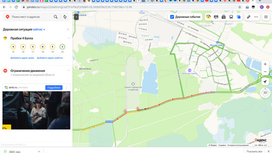Движение затруднено от улицы Карташева в сторону выезда из города. По данным сервиса «Яндекс.Пробки», длина затора составляет 3,5 км. В направлении Калининграда — почти километр. Работы проводят в районе кладбища.