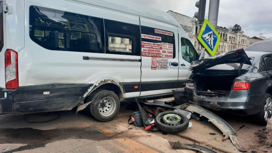 Инцидент произошел около 8.00 (6.00 мск) на пересечении улиц Пушкина и Карла Маркса в Кировском районе. Столкнулись микроавтобус Ford Transit, легковушки Subaru Forester и Audi A4. От удара автобус отбросило на трех пешеходов.