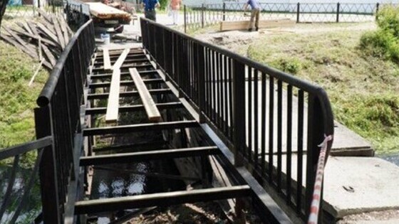 В городской мэрии сообщили, что ремонтом уже начал заниматься подрядчик. Планируется привести в порядок настил пешеходного моста через ручей Безымянный.