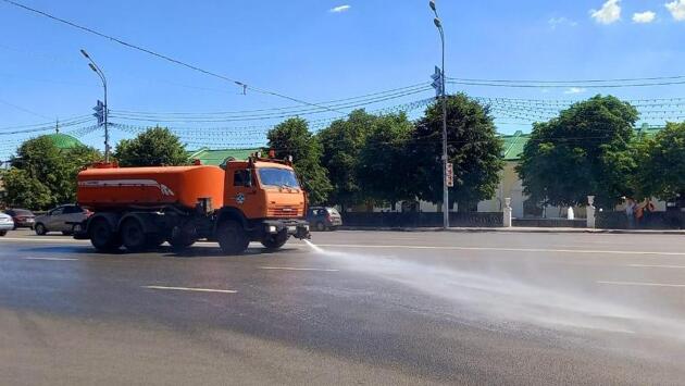 В жару в Рязани моют дорогу и проводят аэрацию воздуха
