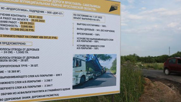 Ремонт дороги Ярославль – Сабельницы в Ярославском районе идет ускоренными темпами, и по словам подрядчика все работы должны успеть закончить до конца сентября. Дорожники уже отремонтировали участок протяженностью 3,8 километра, выйдя на работу в конце мая.