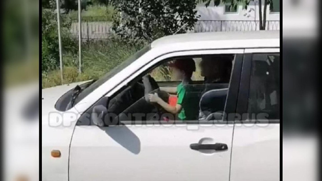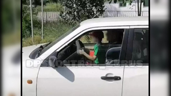 В центре Благовещенска заметили ребёнка, которого посадили за руль автомобиля