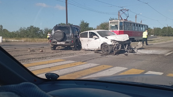 Два автомобиля столкнулись на трамвайных путях в Магнитогорске