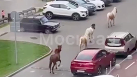«В ЖК "Рассказово" в Новой Москве замечены четыре лошади, которые спокойно бегут по дороге. Рядом находится контактный зоопарк — предположительно, беглецы оттуда», — говорится в сообщении канала. Уточняется, что местным жителям удалось загнать животных на собачью площадку для дальнейших разбирательств.