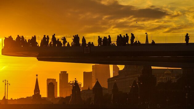 Самый изящный и единственный парящий мост столицы находится в парке «Зарядье». Он представляет собой большую смотровую площадку над Москвой-рекой. С нее можно увидеть собор Василия Блаженного, Спасскую башню Кремля, колокольню Ивана Великого и высотку на Котельнической набережной.