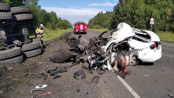 Судя по кадрам, автомобиль такси от удара превратился в груду металла, а большегруз опрокинулся. По словам очевидцев, в результате скончался один человек – водитель сервиса такси. Информация о состоянии других участников происшествия пока не приводится.