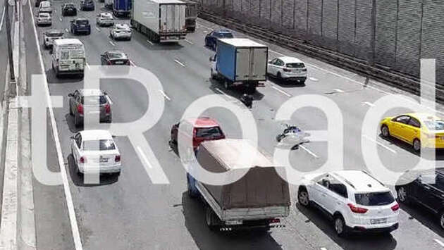 Мотоциклист попал под грузовой автомобиль "Газель" в Москве. Видео ДТП разместил Telegram-канал столичного Департамента транспорта. "На внешней стороне 50 км МКАД (в районе развязки с ул. Генерала Дорохова) произошло ДТП с участием мотоцикла. На месте работают оперативные службы", - говорится в сообщении. Судя по кадрам, автомобиль Fiat Punto пытался перестроиться из второй в третью полосы и не пропустил мотоциклиста. От удара байк откинуло под "Газель", двигавшуюся в четвертом ряду. Мотоциклист оказался под колесами грузовика, но выжил. Ранее сообщалось, что дети читали молитву "Отче наш" в автомобиле, который застрял в огромной луже в Липецке.