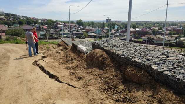 Было выявлено разрушение тротуара в районе локальных очистных сооружений. На противоположной стороне произошло отклонение габионной стенки из-за того, что размыло грунт. Слой асфальта в районе колодцев имеет толщину меньше, чем заложено по проекту.