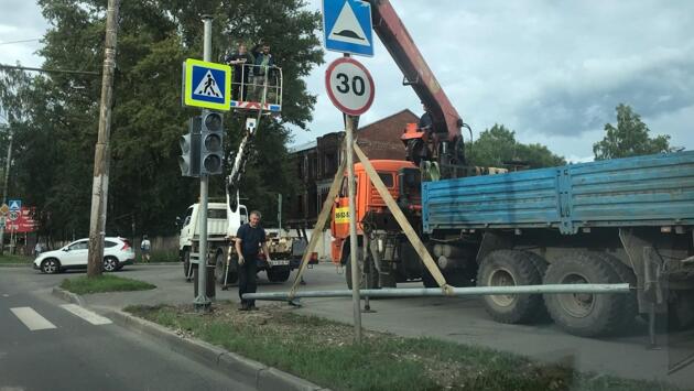 Новые светофорные объекты монтируют рядом с пешеходным переходом в районе ул. Чернышевского, 88. Решение об установке светофорных объектов приняли в рамках проектного комитета «Вологда — снижение аварийности на улично-дорожной сети».
