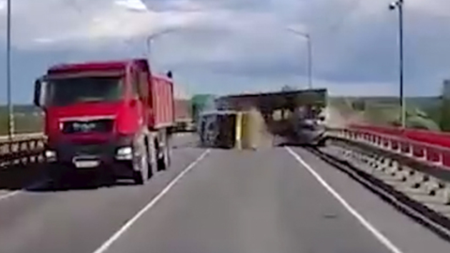 В Курганской области прицеп с многотонным дорожным катком раздавил женщину за рулем легкового автомобиля. Момент происшествия попал на видео, которое опубликовал Telegram-канал SHOT.