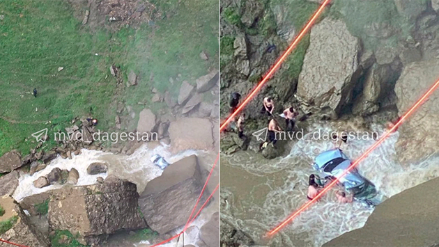 На видео попал момент падения автомобиля с четырьмя людьми в ущелье в Дагестане
