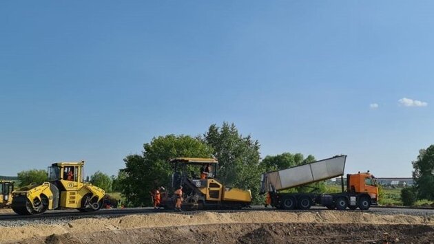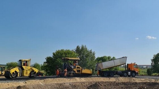 На объекте разобрали асфальтобетонное покрытие, завершили работы по устройству насыпи земляного полотна, подстилающего слоя из песка, основания из ЩПС С-4 и слоя покрытия из асфальтобетонной смеси А32ОТ.