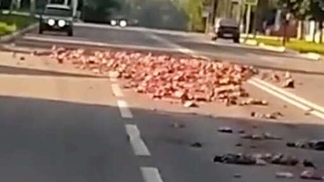 Автомобиль "КамАЗ" рассыпал по дороге свиные кишки и требуху в городе Обоянь Курской области. Об этом сообщает Telegram-канал "Подъем". По данным канала, отходы вывалились из грузовика "КамАЗ" из-за плохо закрытых запоров заднего борта. На переезде машину тряхнуло и замки открылись. В ГИБДД заявили, что начата проверка. Водителя могут привлечь к ответственности за создание помех в дорожном движении. В полиции добавили, что предприятие, на которое везли кишки, сейчас пытаются привлечь к уборке трассы. Ранее сообщалось, что в Башкирии грузовик, перевозивший около 200 баранов, врезался в металлический отбойник и завалился на бок.