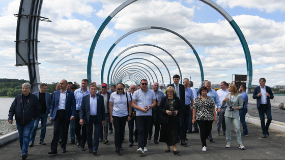На фоне этого осмотреть стройку приехали депутаты заксо — все, кроме считанных единиц отсутствующих. Пройдя до середины переправы, парламентарии окружили руководителя проекта Вячеслава Назарова. «Вы успеете все смонтировать до 12 августа?» — поинтересовалась спикер Людмила Бабушкина. «Конечно! Мы не просто успеем. Мы, начиная с 1 августа, будем тестировать освещение», — заверил Назаров.