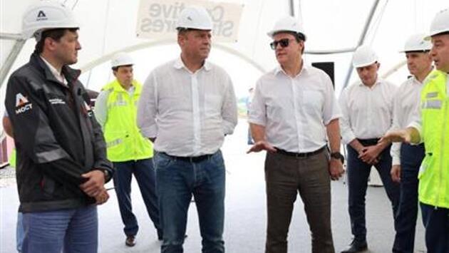 О текущей ситуации им доложил генеральный директор компании-подрядчика АО "ДСК "АВТОБАН" Алексей Андреев. В настоящее время на строительстве дороги работает 1700 специалистов, на возведении моста — еще около 2000 человек. На 18-ти км автомобильной трассы уже уложен верхний слой дорожного покрытия.